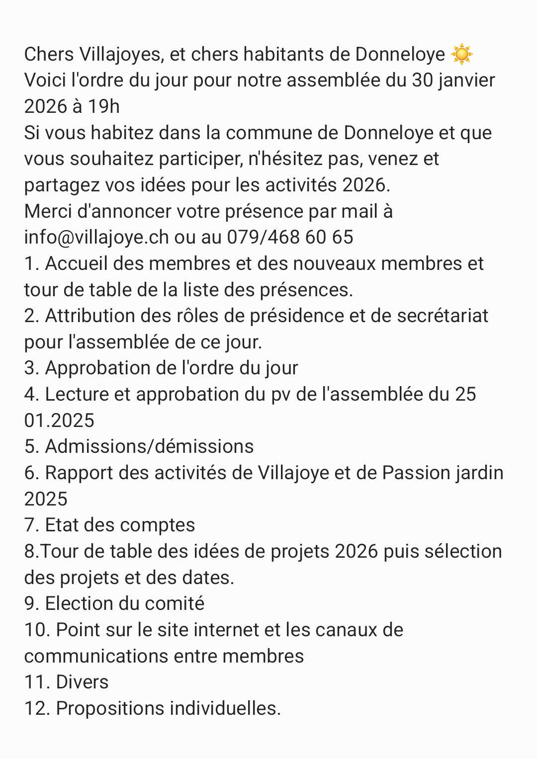 Villajoyes – Assemblée Générale – recherches de nouveaux membres Villajoyes, – Assemblée générale – recherche de nouveaux membres – 30 janvier 2026 à 19h00